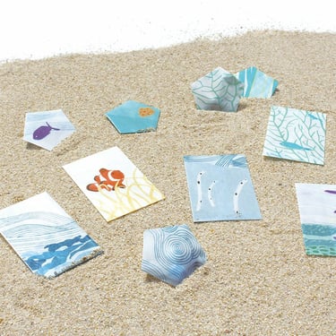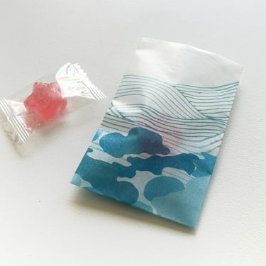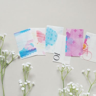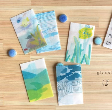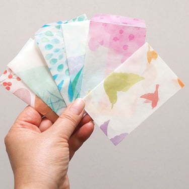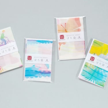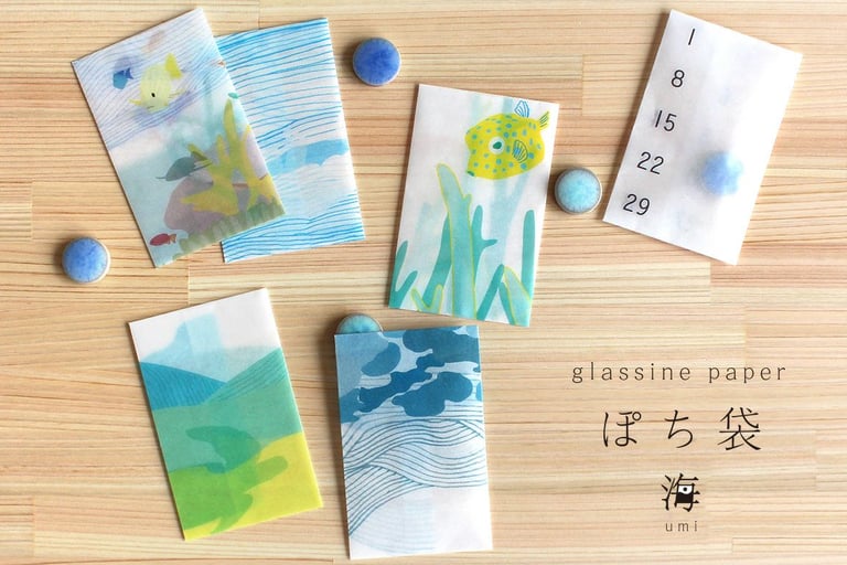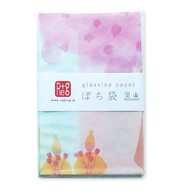 Petit envelopes made of thin transparent paper called "glassine paper" which is well known for being use of Japanese traditional paper balloon and book covers. These glassine papers were recycled from our calendar project and reborn in new shape.