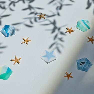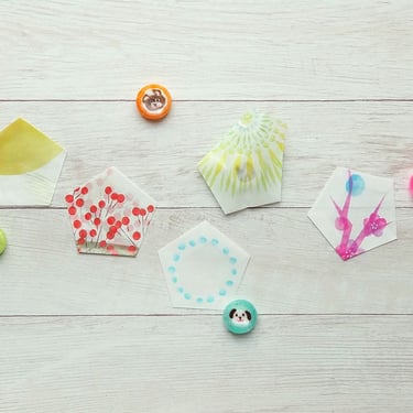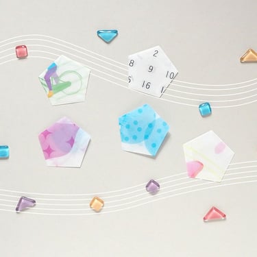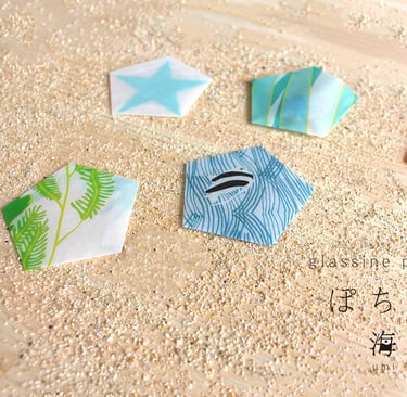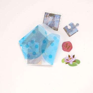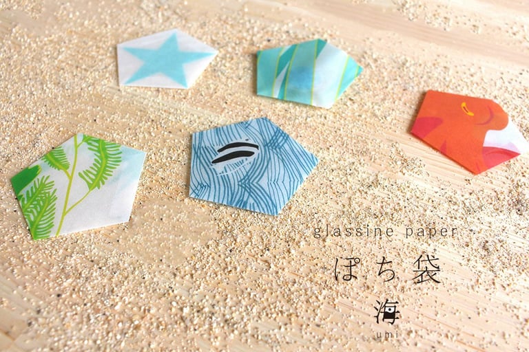 Petit envelopes made of thin transparent paper called "glassine paper" which is well known for being use of Japanese traditional paper balloon and book covers. These glassine papers were recycled from our calendar project and reborn in new shape.
