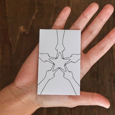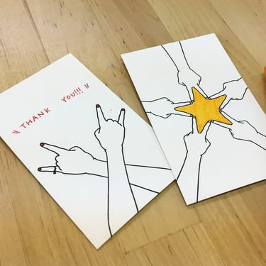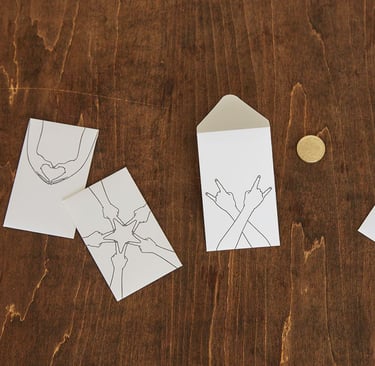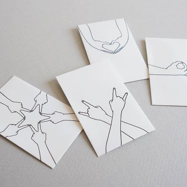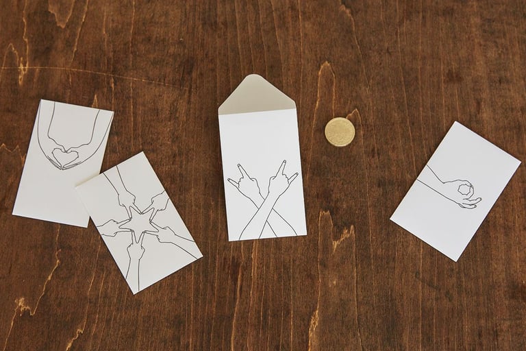 Hand-shape envelope for sending your thoughts. Send your best wishes with your presents. Four designs: heart, star, rock and money.