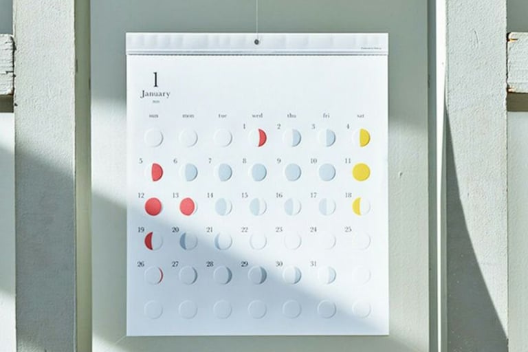 This calendar expresses the phases of the moon using delicate colors that change with the seasons.