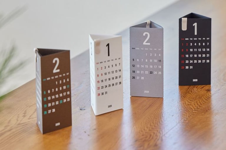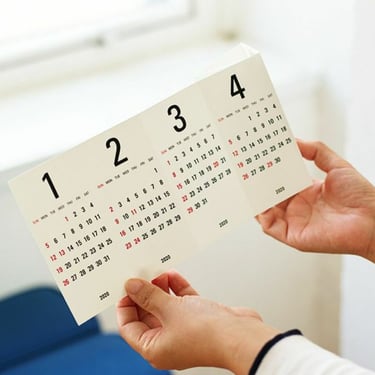 A hand-sized three-sided calendar that lets you check three months at a time.